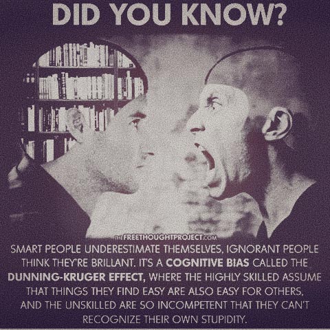 Volgens die Dunning-Kruger effek is mense wat niks van ‘n saak af weet nie, geneig om ‘n veel groter kans te hê om swak of verkeerde besluite te neem. Hul onvermoë veroorsaak dat hulle nie hul foute kan raaksien of wil erken nie. Hulle dink hul weet van beter, maar hulle doen nie.  Dit terwyl die mense wat wel van beter weet, hul eie vermoëns onderskat en selfs minderwaardig mag voel.