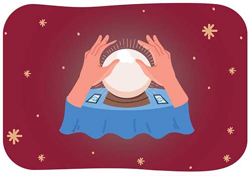 As if you have a crystal ball in front of you, and can see the future in it, all you see is doom and gloom. You believe you know reasons beforehand that something negative is going to happen in the future, and that means that you firmly believe that that is exactly what is going to happen.